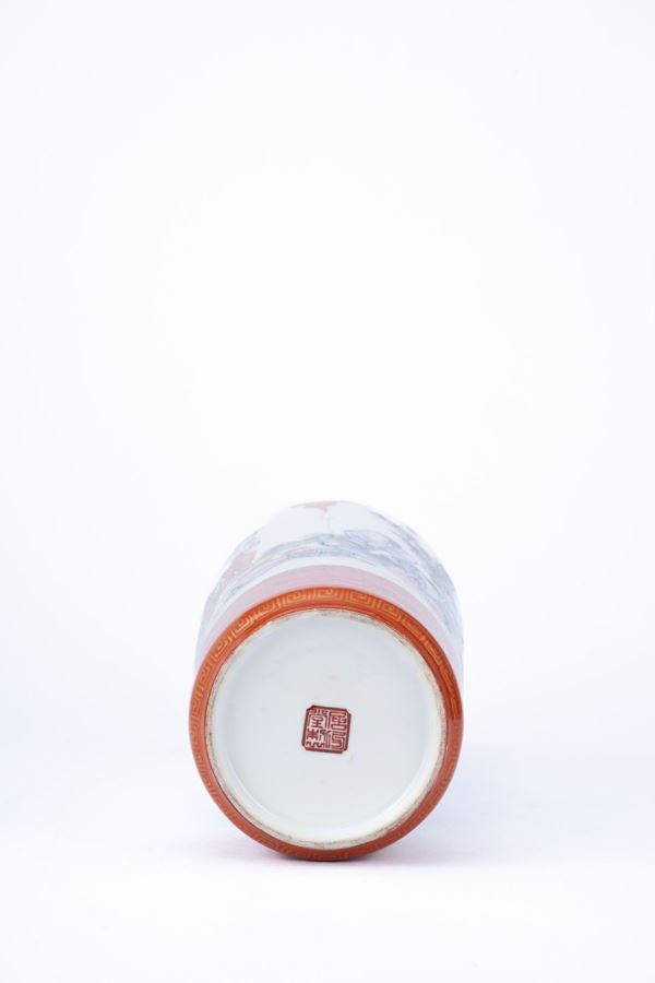 民国时期(1912-1949)珊瑚红粉彩人物故事纹瓶 “居仁堂制” 款