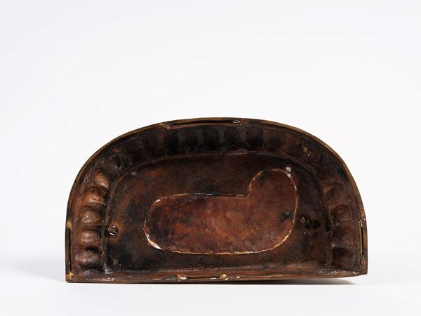 Seated on a lion with hands joined in dhyana mudra, holding a small vase; all on a chiseled lotus-shaped pedestal.