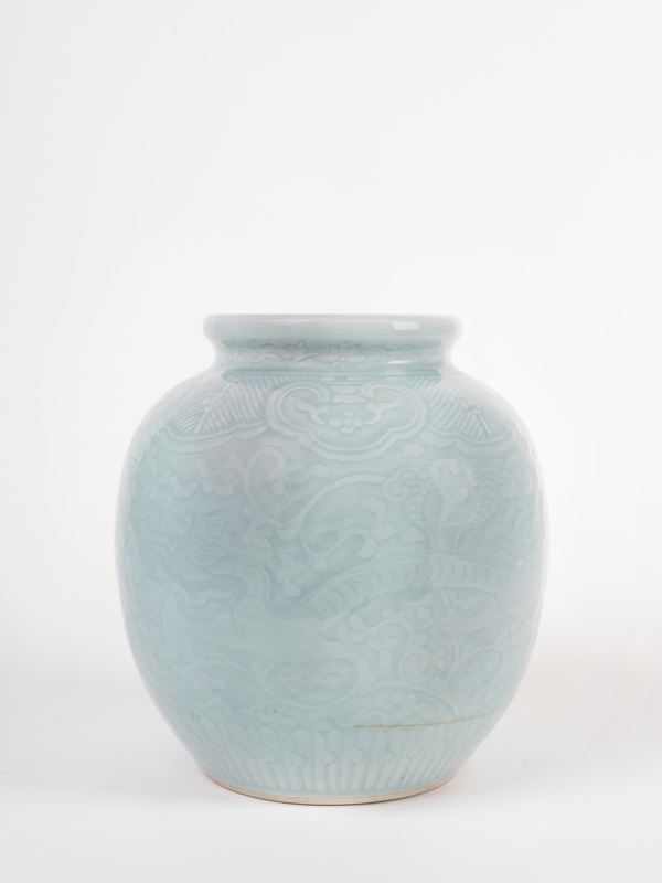 A CELADON-GLAZED TAIBAI PORCELAIN JAR, China, Qing dynasty, 19th century