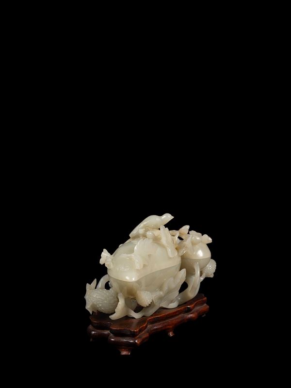 镂空雕花鸟玉盖盒,中国,清朝(1644-1911)