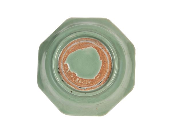 In octagonal shape, with decorative engraved patterns.