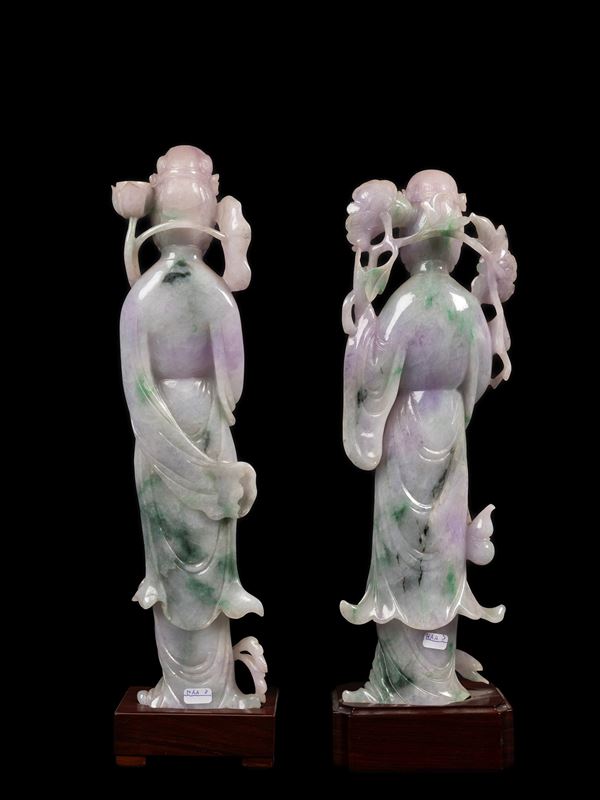 A PAIR OF JADEITE GUANYIN STATUE, China, Republic Period (1912-1949)
