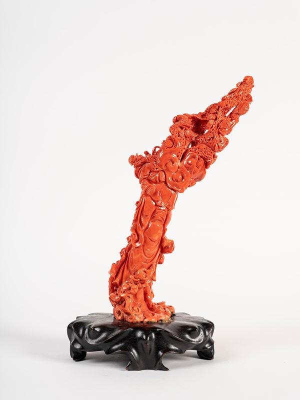 红珊瑚雕像,中国,20世纪初, 净重 971克
