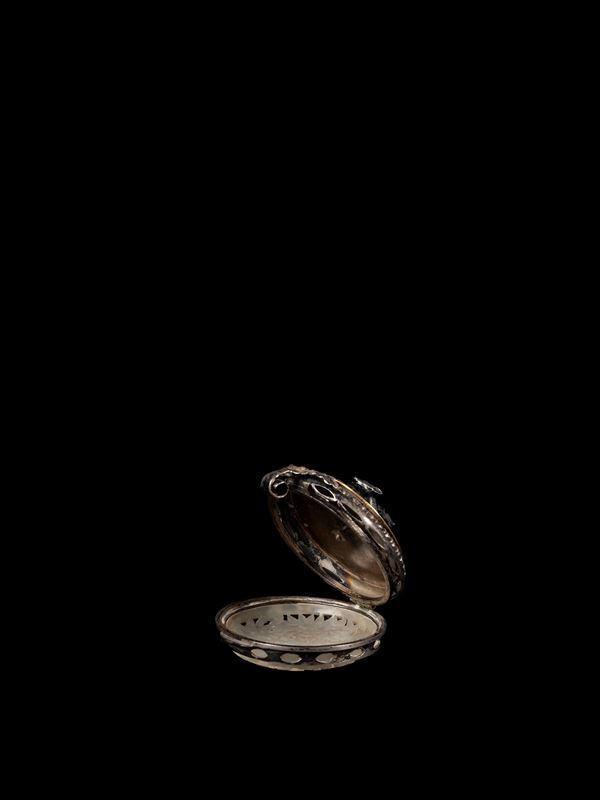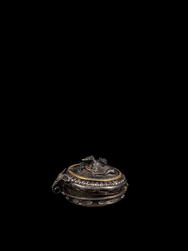 圆形银制盒嵌玉片,中国,清朝(1644-1911)