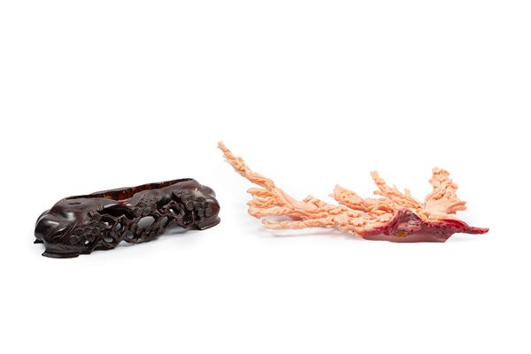 Carved with naturalistic motifs featuring flowers, branches, and little birds. Finely carved wooden base. Weight: g 485.