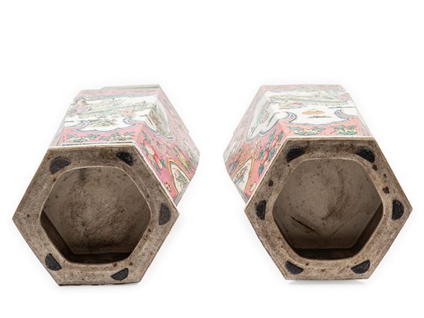 A PAIR OF HEXAGONAL BALUSTER-SHAPED PORCELAIN VASES, China, late 19th / early 20th century