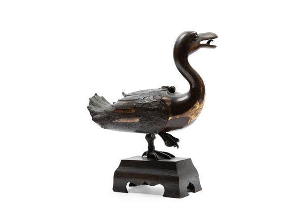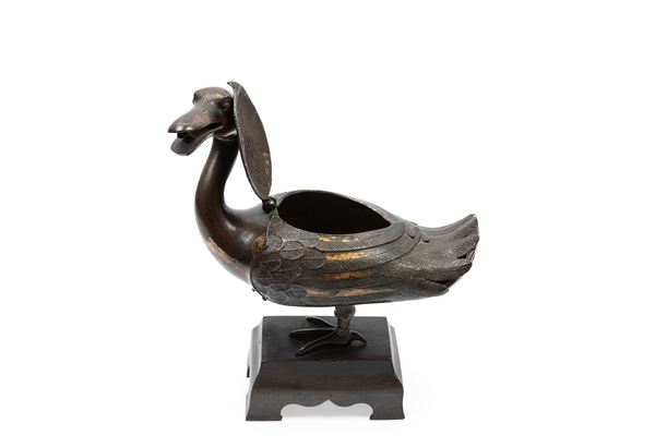 A PARCEL GILT-BRONZE DUCK-SHAPED INCENSE BURNER AND COVER, China, Ming dynasty (1368-1644)