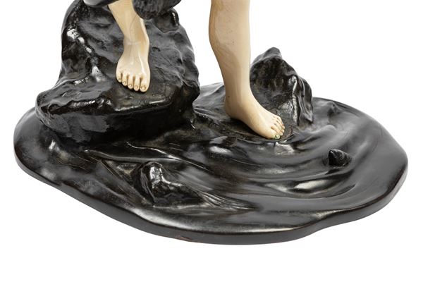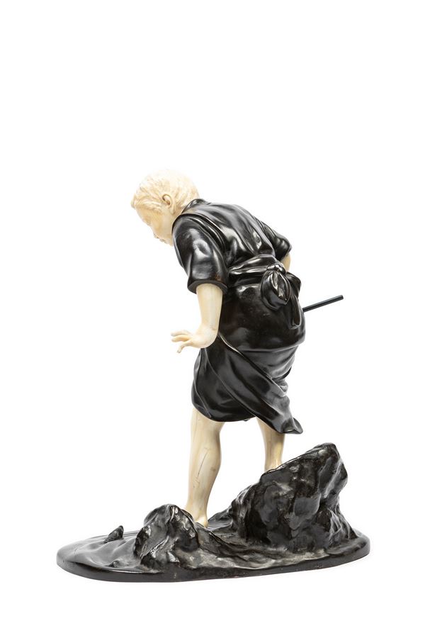 ☼AN IVORY AND BRONZE OKIMONO, Japan, Meiji period (1868-1912)