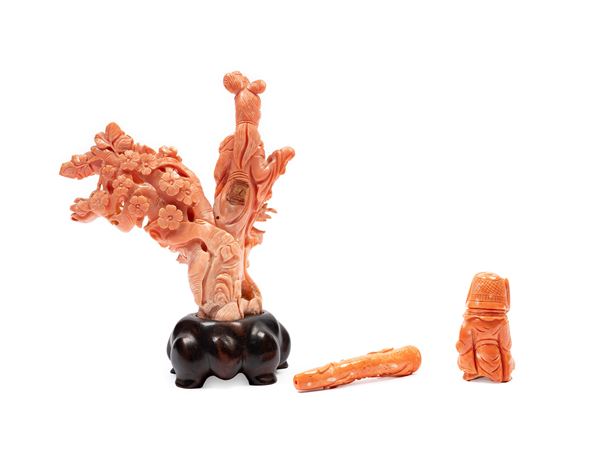 ☼THREE CORAL CARVINGS, China, first half of the 20th century