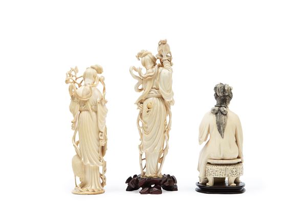 象牙人物雕塑摆件三件,中国,十九世纪末/二十世纪初
