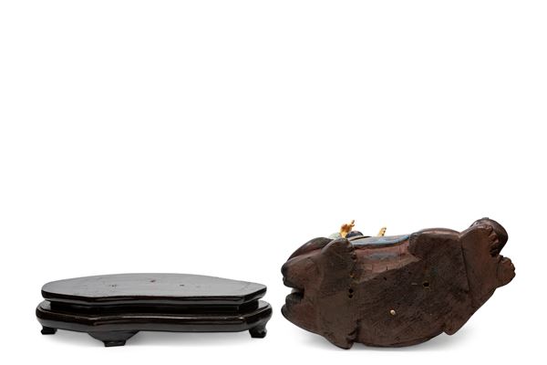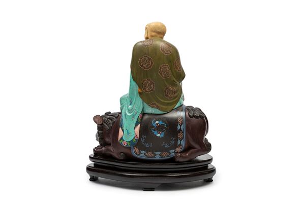 ☼WOODEN SCULPTURE WITH IVORY ELEMENTS, China, 1900 ca.