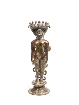A BRASS SCULPTURE OF JINA PARSVANATHA, India, 16th century