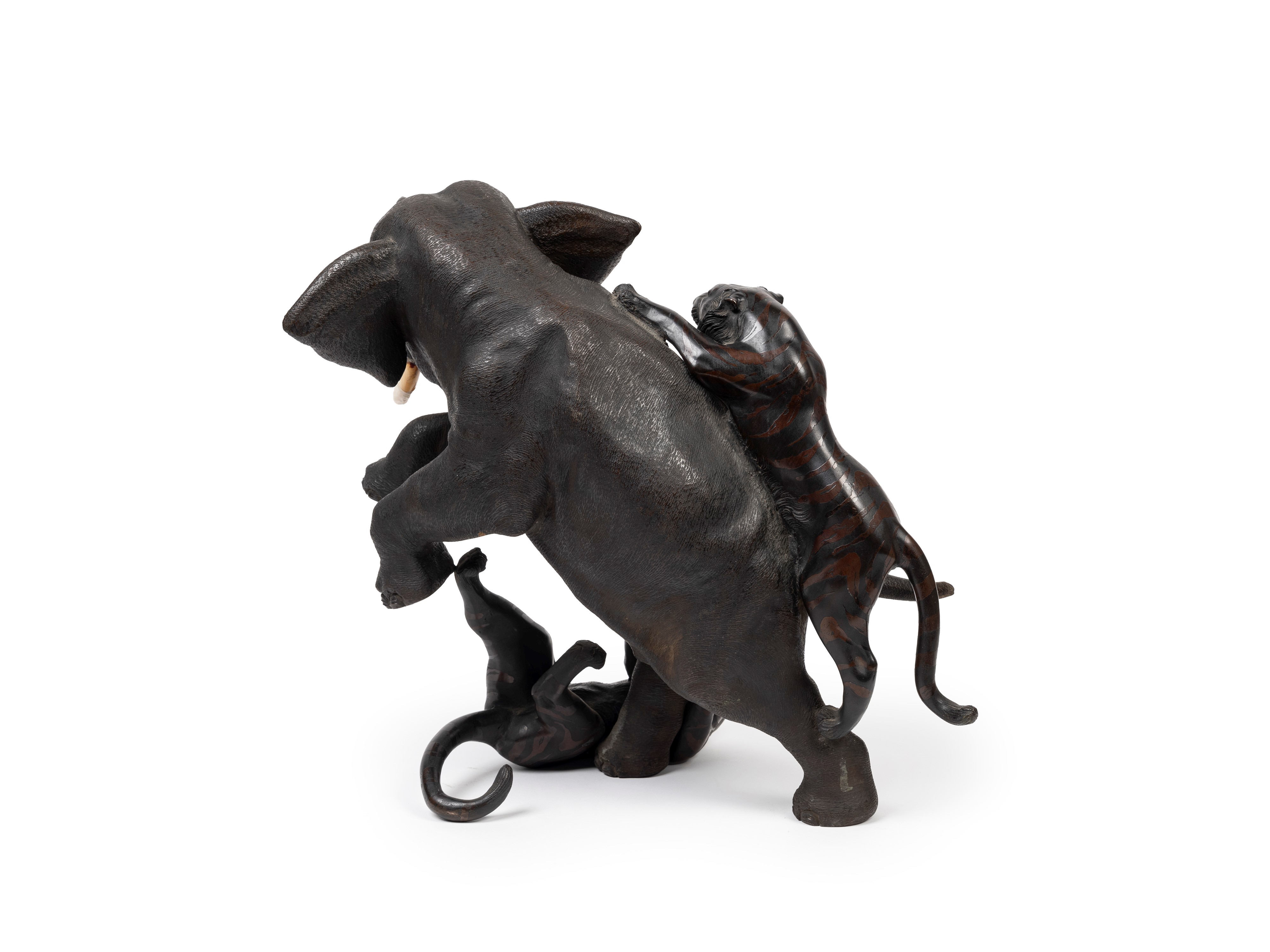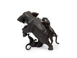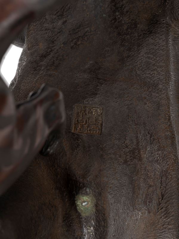 ☼A BRONZE OKIMONO WITH IVORY DETAILS, Japan, Meiji period, late 19th century