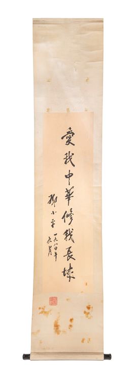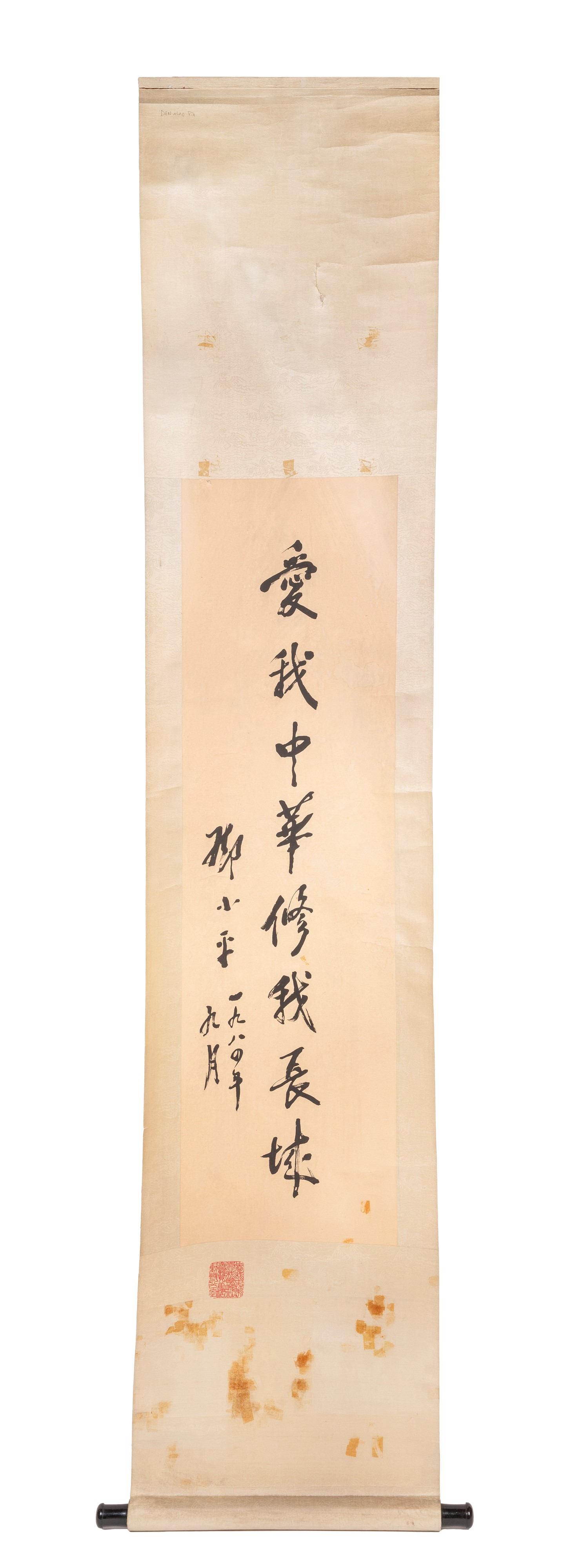 中国书法立轴  书写“爱我中华 修我长城”,款识为“邓小平 一九八四年九月”
