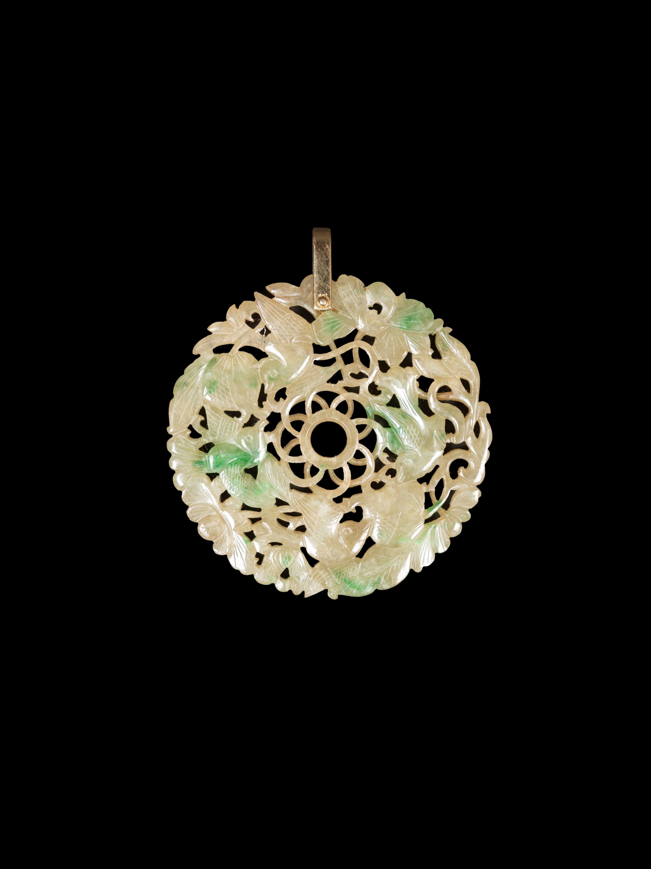 A CARVED OPENWORK JADEITE PENDANT, China, 19th / 20th century