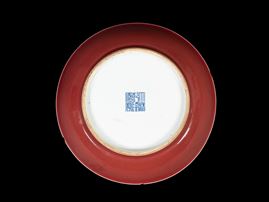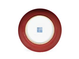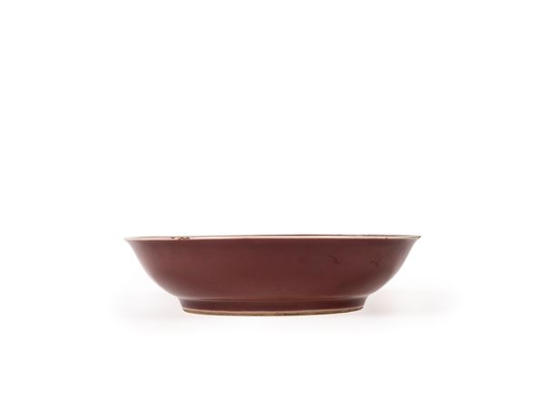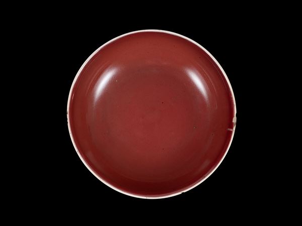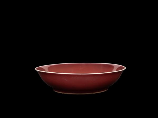 A COPPER-RED-GLAZED PORCELAIN DISH, China, Qianlong (1735-1796) mark and period