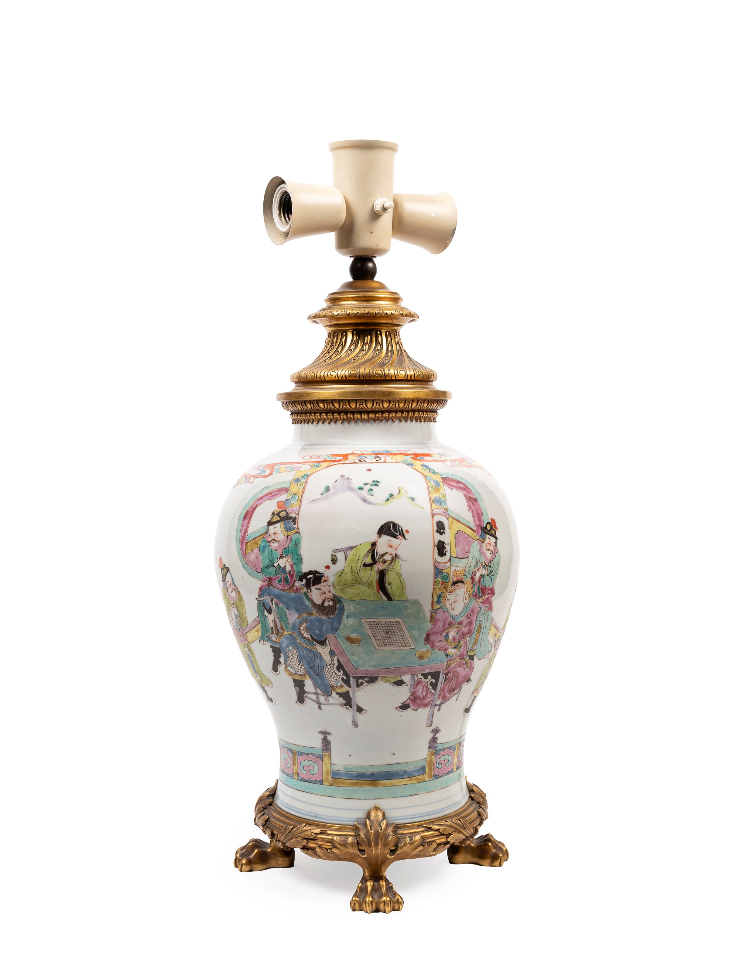 清雍正 粉彩古人弈棋图瓷瓶(改装为台灯)
