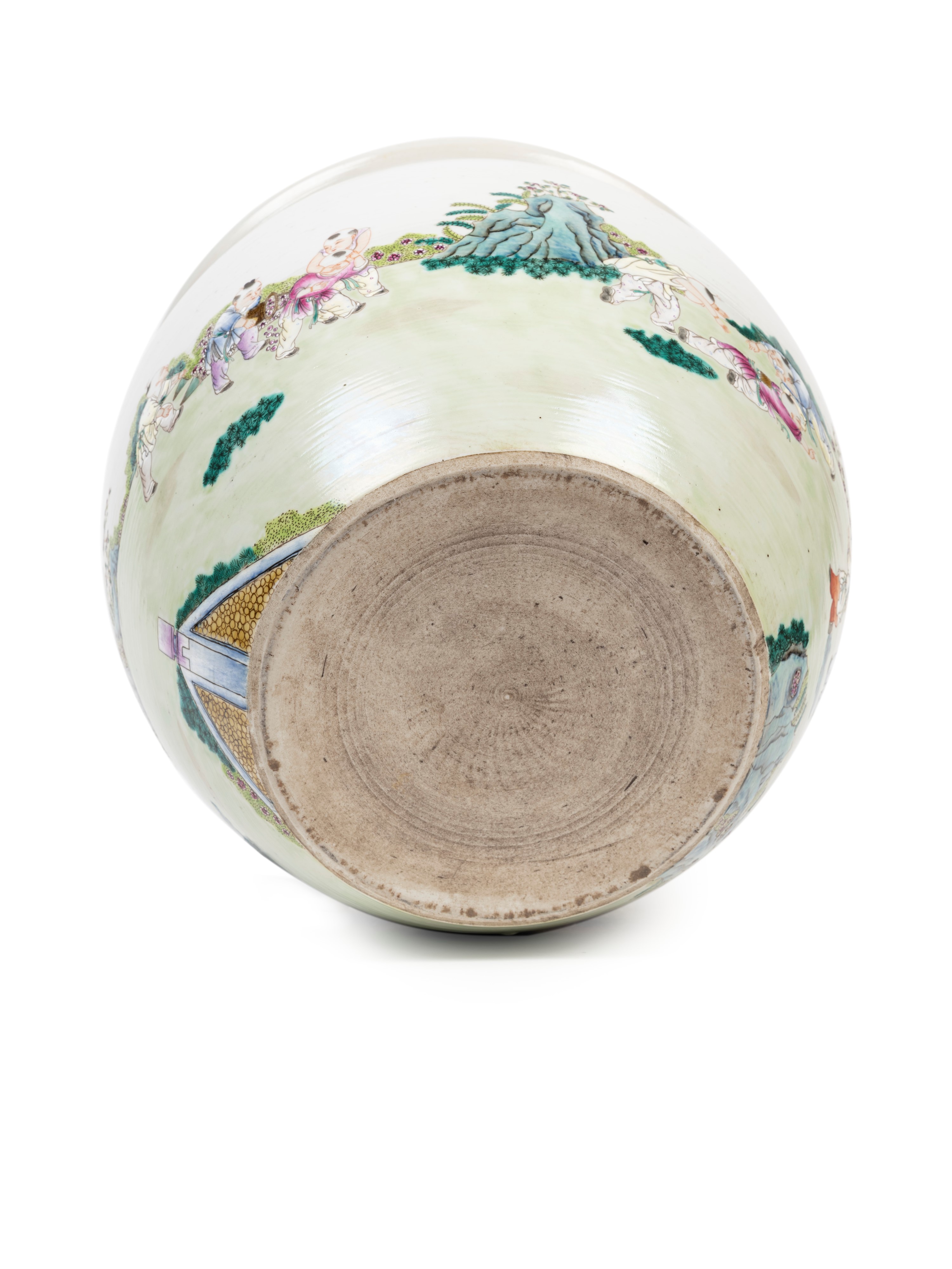Painted continuously around the entire body with a scene of boys in a garden among bamboo, rocks, and flowers, all under a ruyi band.