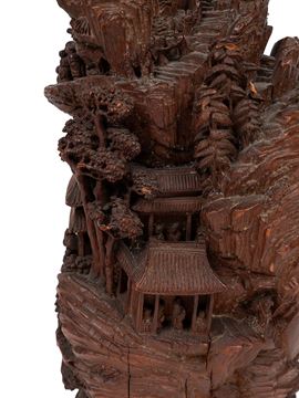 清18/19世纪  竹根雕山峦亭台楼阁和人物意境摆件
