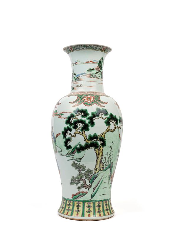 A LARGE FAMILLE VERTE BALUSTER-SHAPED PORCELAIN VASE, China, Qing dynasty, 19th century