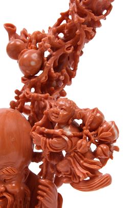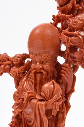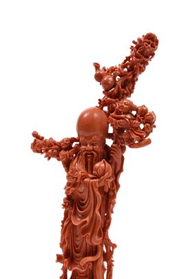19/20世纪 珊瑚雕刻寿星摆件 重732 g