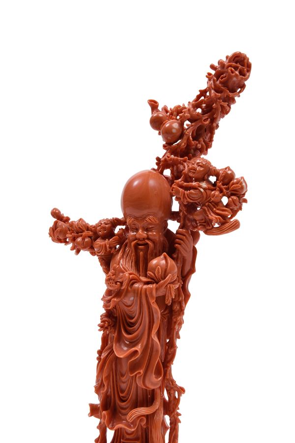 ☼A LARGE RED MOMO CORAL SCULPTURE, China, late 19th / early 20th century