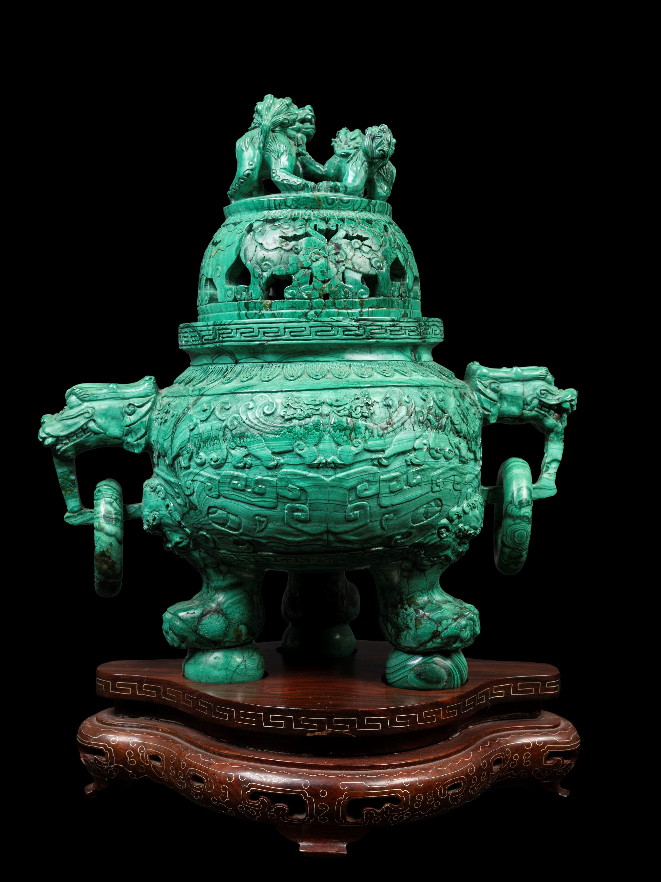 A MALACHITE TRIPOD-CENSER, China, 20th century