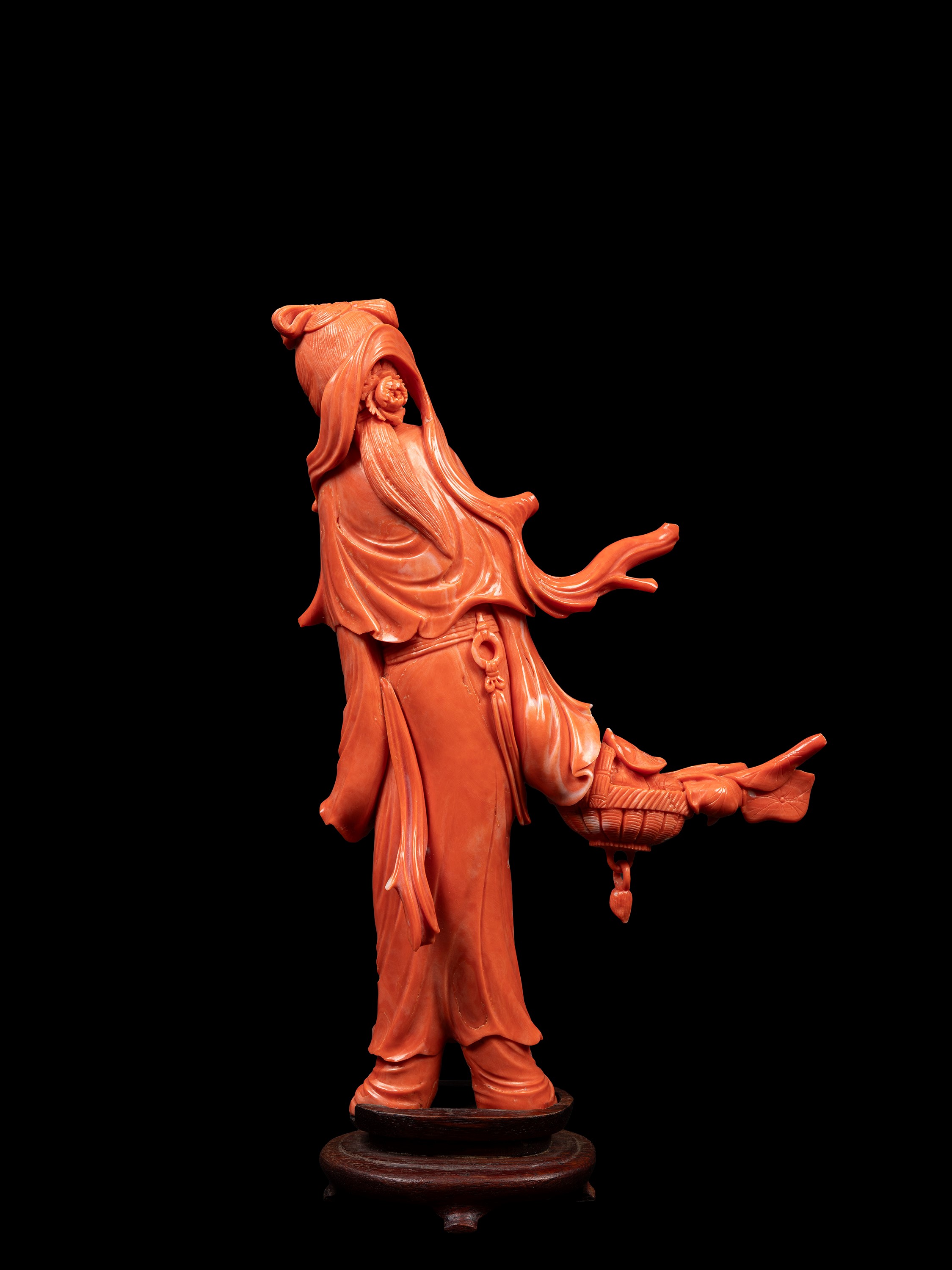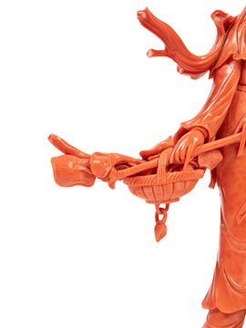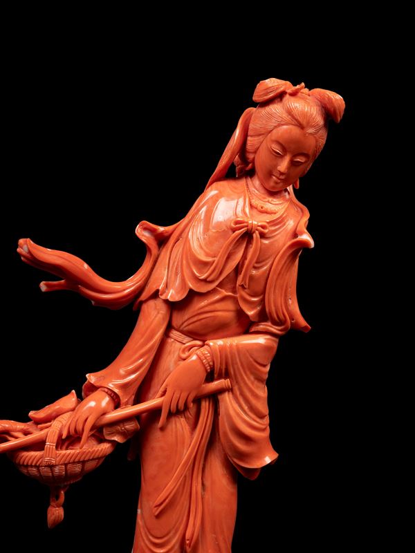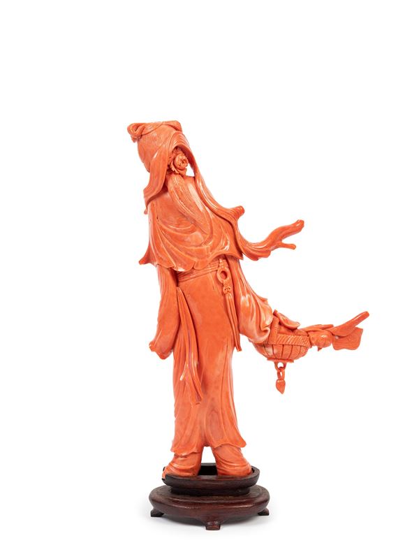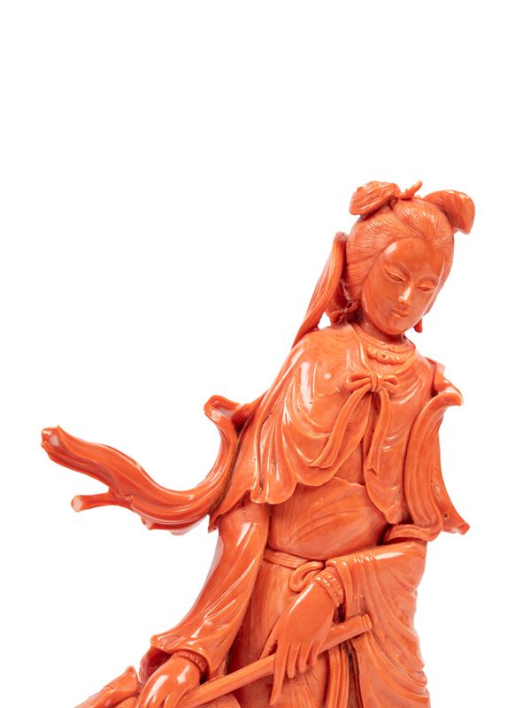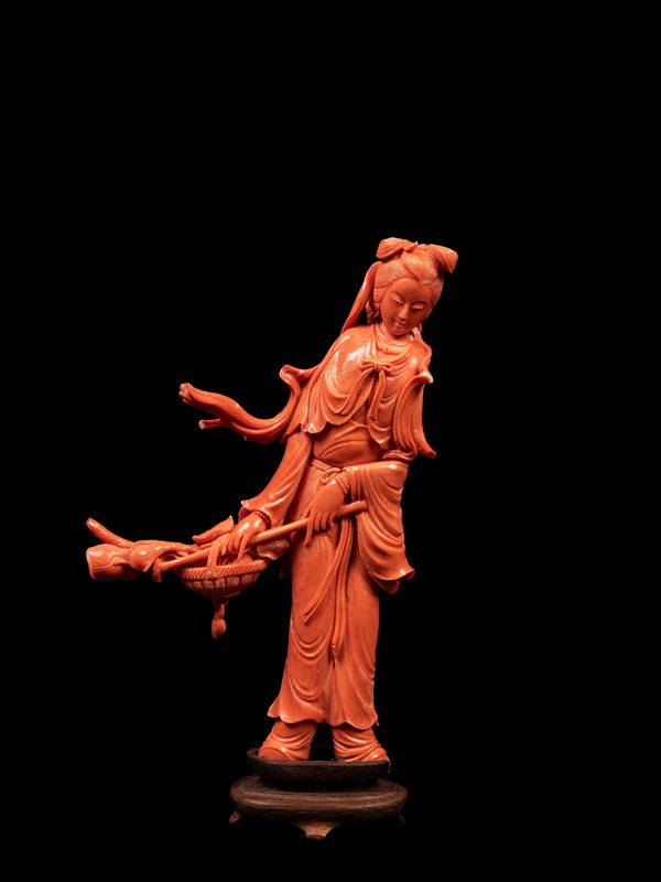 20世纪  珊瑚雕仕女立像  总重684g