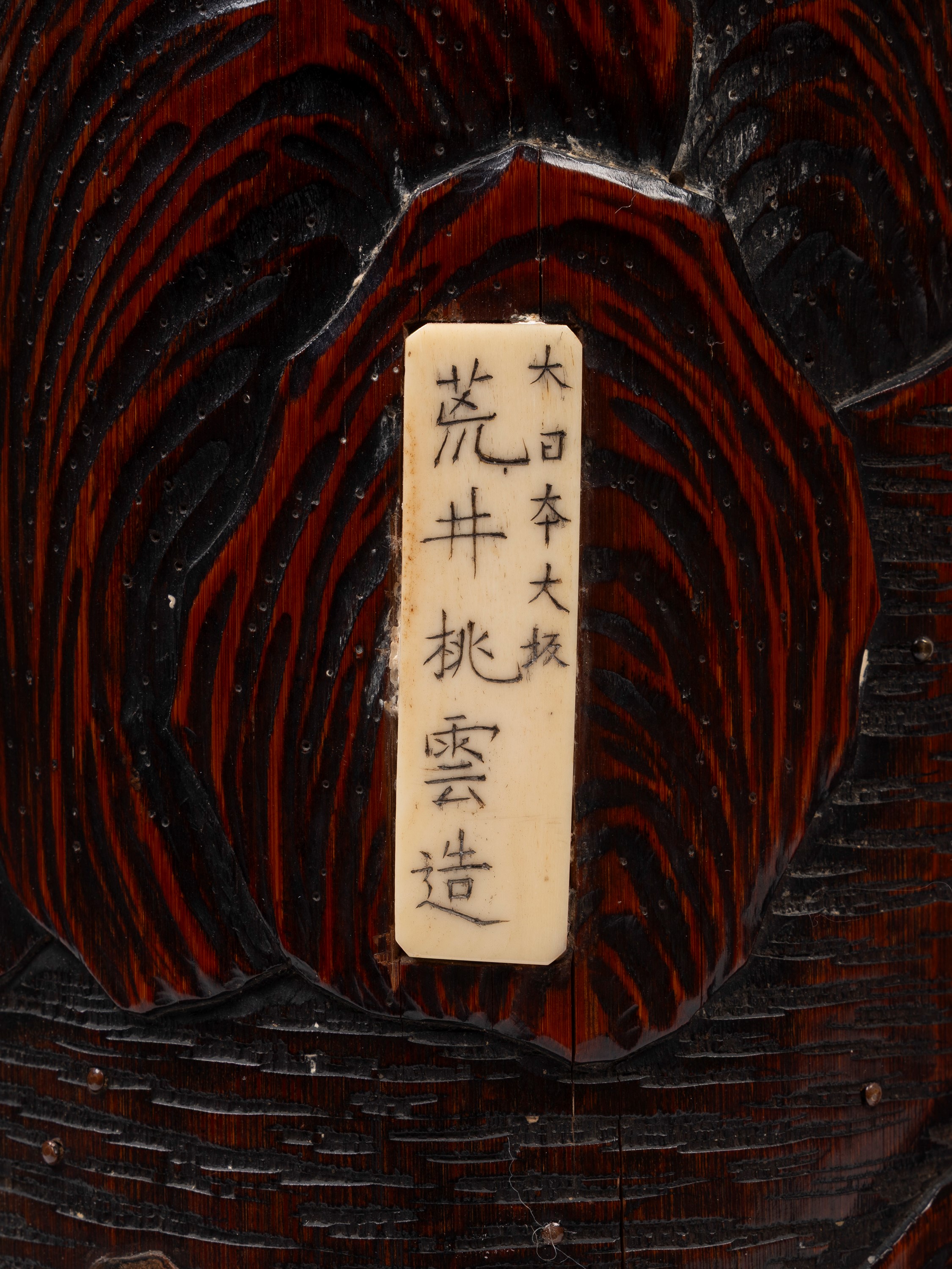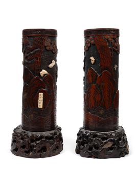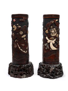 A PAIR OF BAMBOO STANDS WITH BONE INLAYS IN THE SHIBAYAMA TECHNIQUE, Japan, Meiji period (1868-1912)