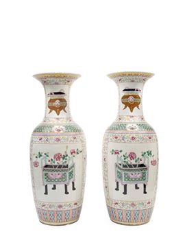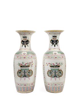 A PAIR OF FAMILLE ROSE PORCELAIN VASES, China, late 19th / early 20th century