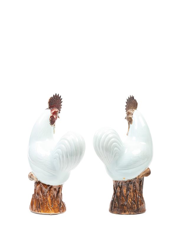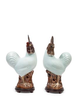 清18世纪   一对雄鸡瓷塑摆件