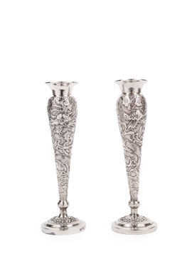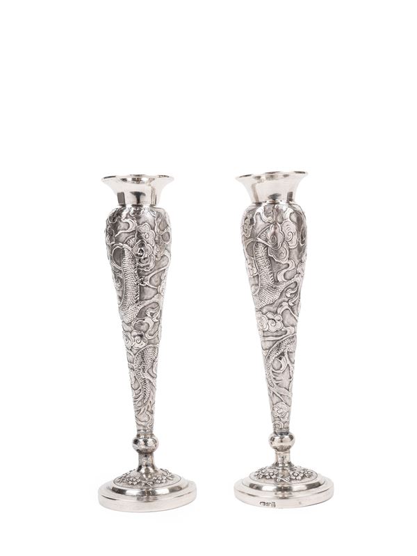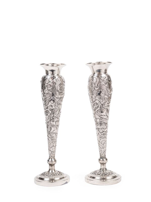 A PAIR OF SILVER FLOWER HOLDERS, China, early 20th century