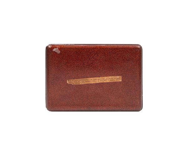 Of rectangular form, decorated in relief with a scene of children playing in a mountainous landscape with pagodas.