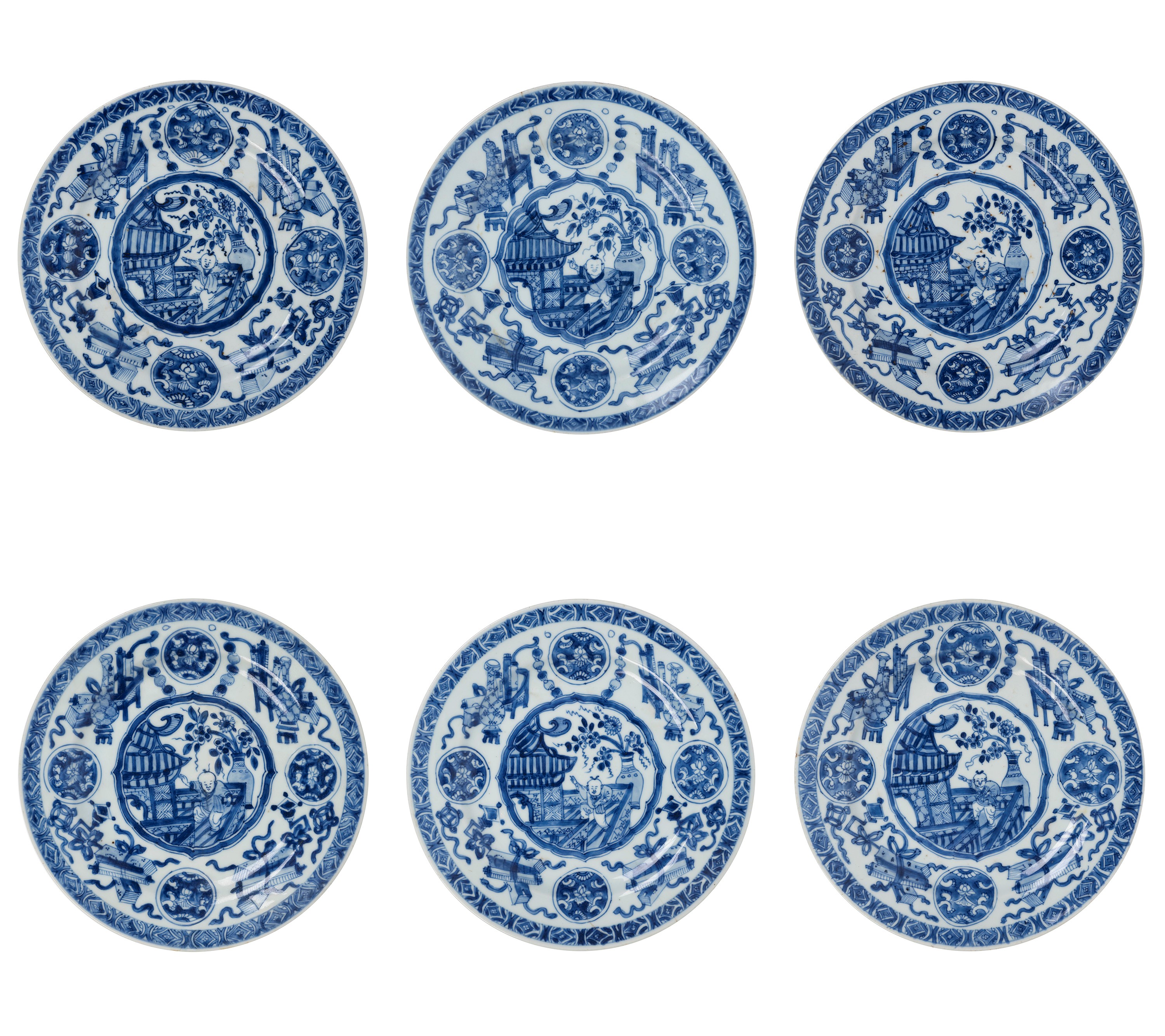 A SET OF SIX BLUE AND WHITE PORCELAIN DISHES, China, Qing dynasty, Kangxi period (1661-1722)