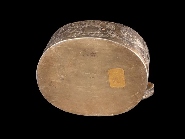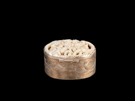 A SILVER BOX WITH A MOTTLED JADE PLAQUE AS COVER, China, Qing dynasty, 19th century