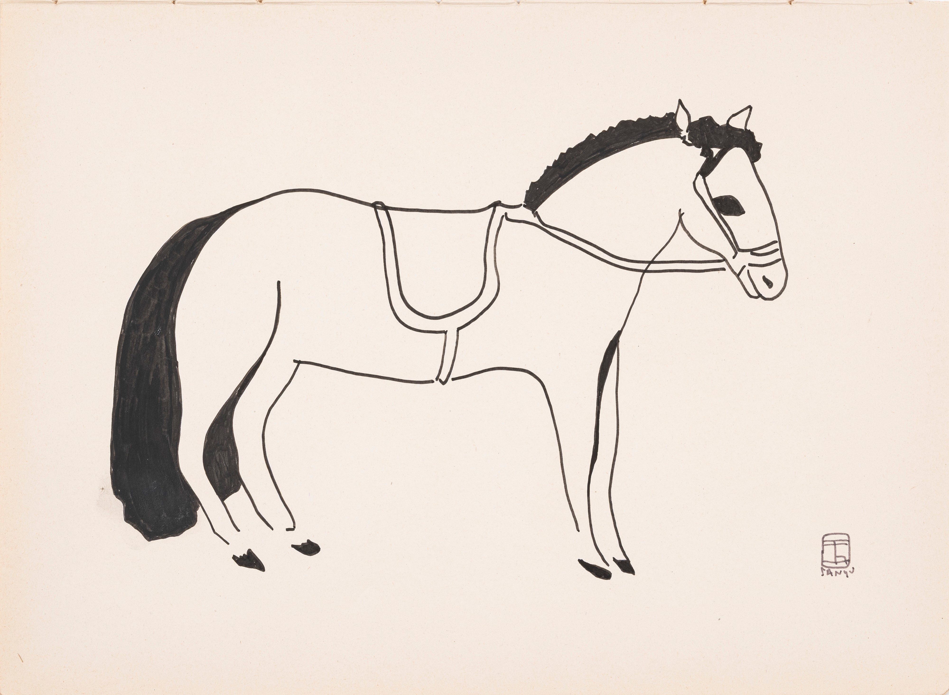 Depicting profiles of women and horses.