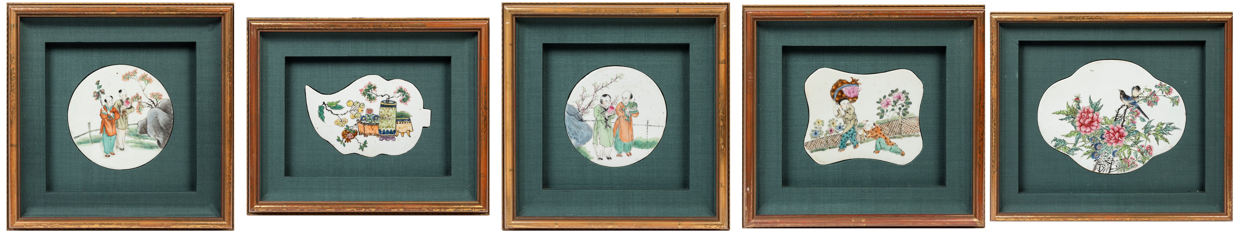 FIVE FAMILLE ROSE PORCELAIN PLAQUES, China, Republic period (1912-1949)