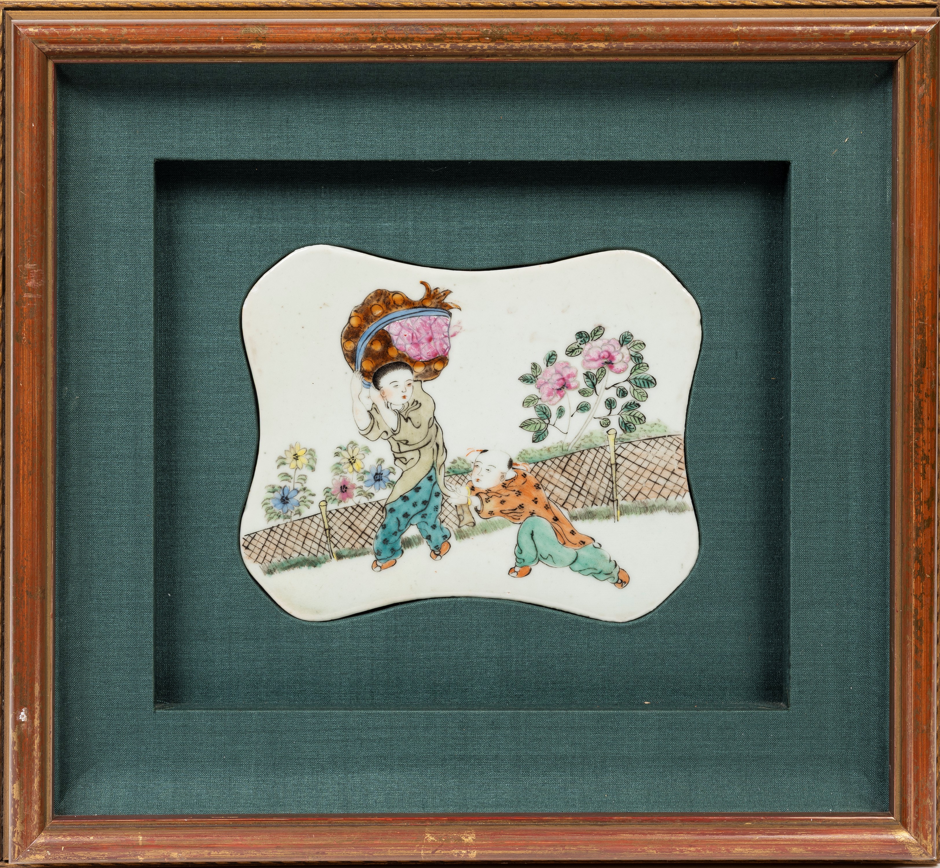 Of various shapes and sizes, the pieces depict children at play in a naturalistic landscape, a floral motif inhabited by birds, and vases of archaic form adorned with plants.