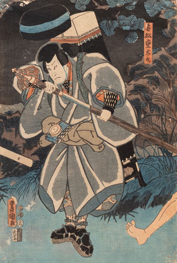 By the master Utagawa Kunisada, from the series ‘Of the Nō Theatre’ and ‘Warriors’.”