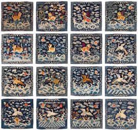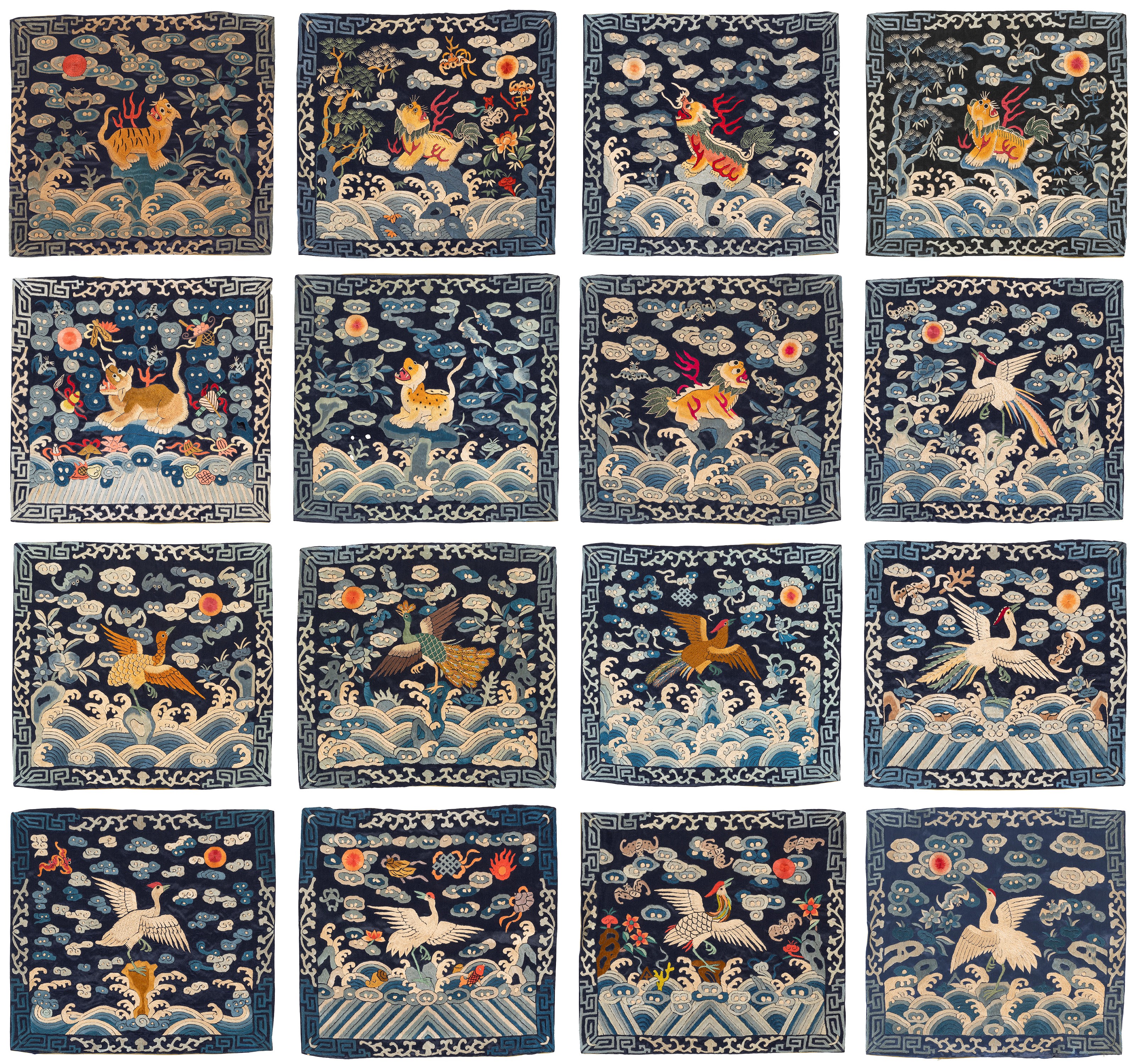 SIXTEEN EMROIDERY SILK 'RANK BADGES'', China, Qing dynasty (1644-1911)