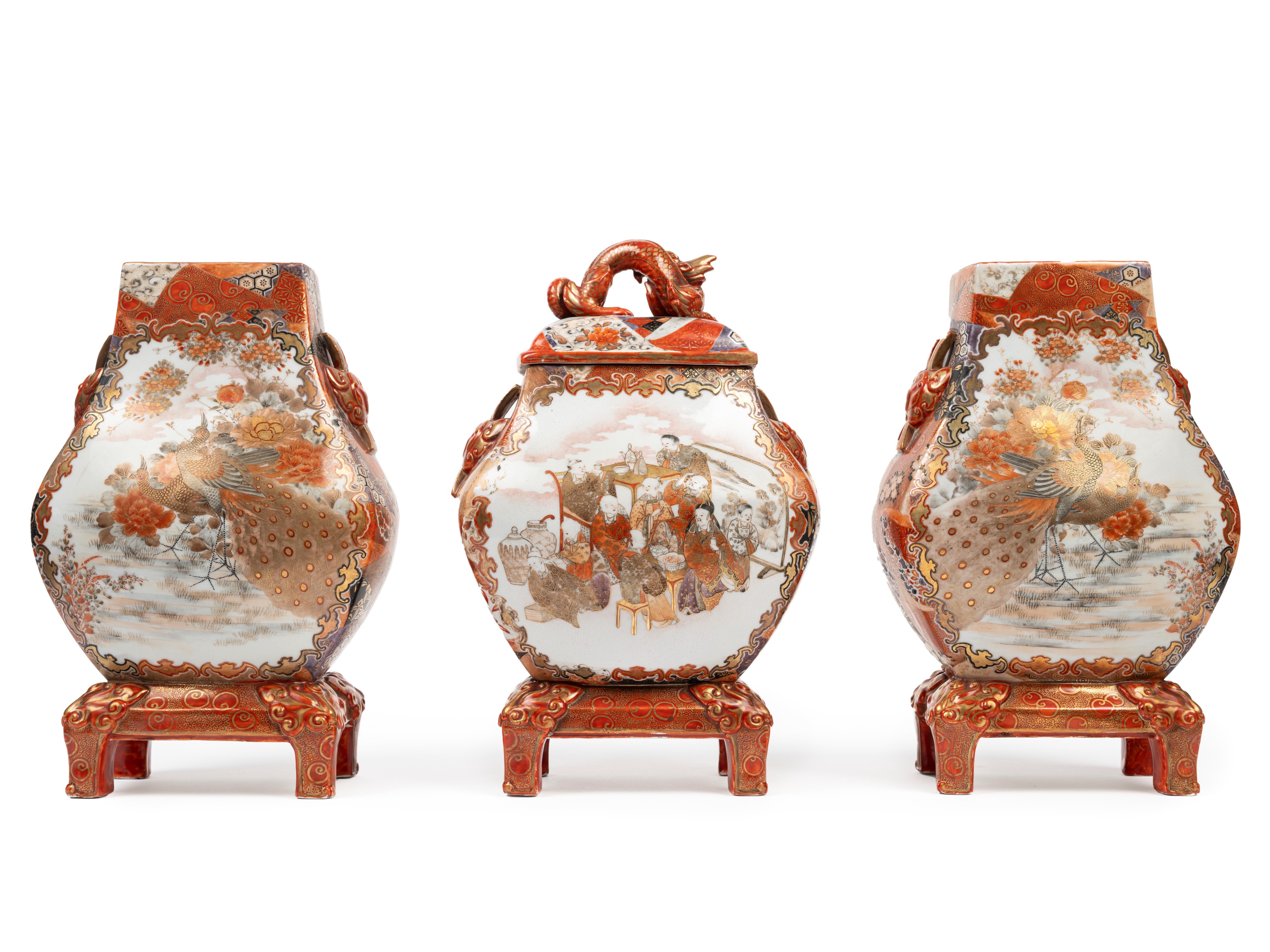 THREE KUTANI PORCELAIN VASES, Japan, Meiji period (1868-1912)