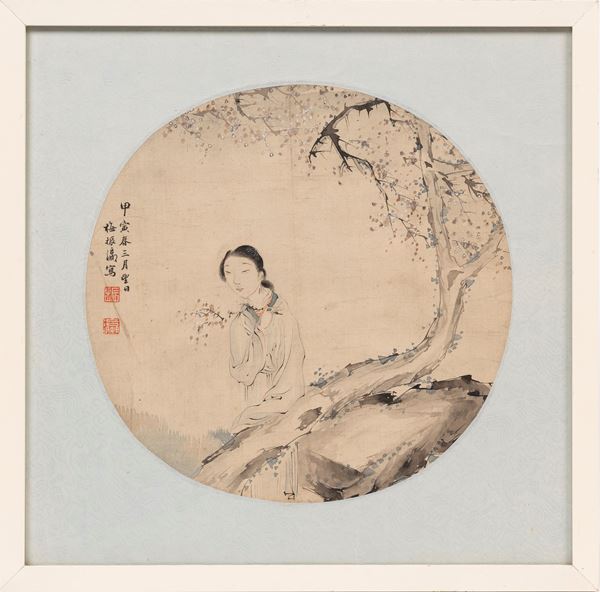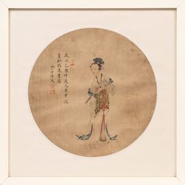 Of circular form, depicting figures in gardens. Each bears inscriptions.