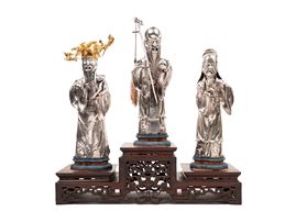 THREE SILVER FIGURES, China, 20th century