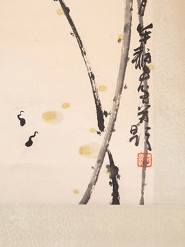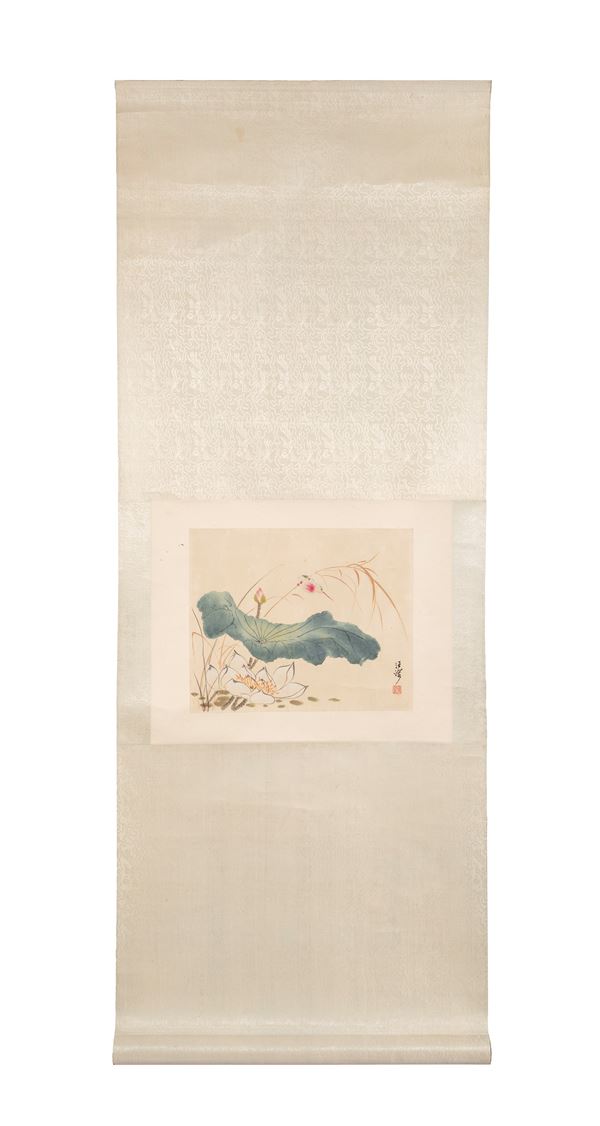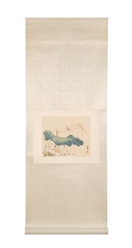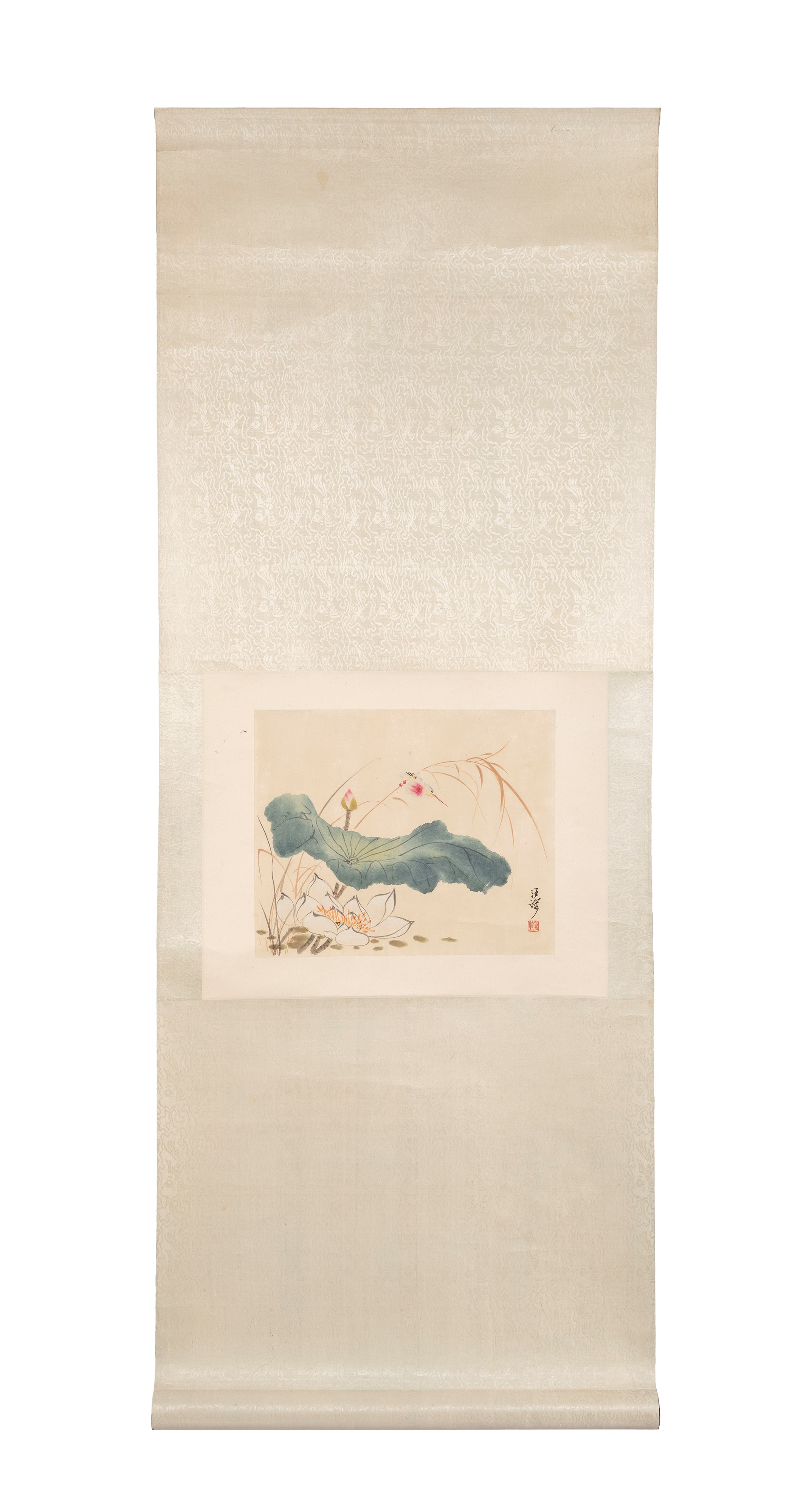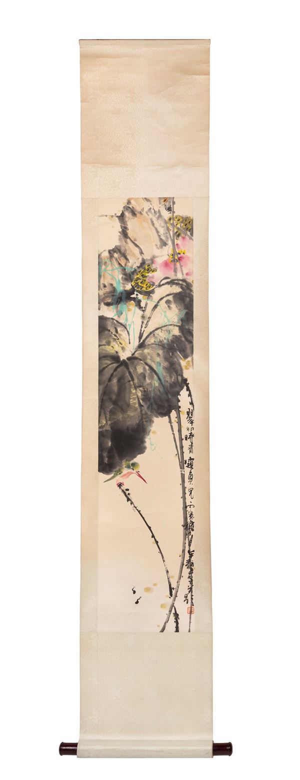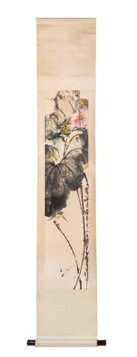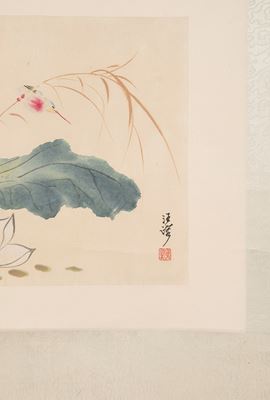 20世纪  荷花水鸟写意画立轴/ 汪溶的花鸟画
