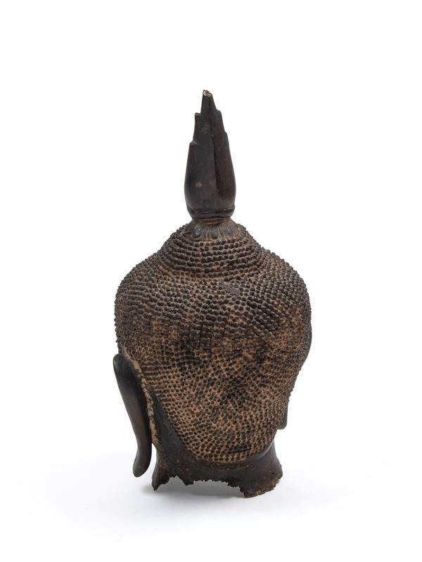 A BRONZE BUDDHA'S HEAD, Southern India, 19th century