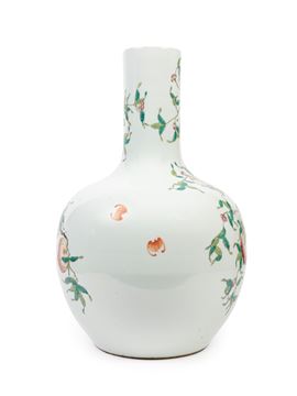 Of the classic Tiangqiuping form, it is decorated with a peach tree, flowers, and bats.