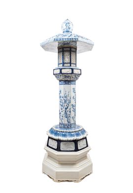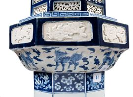 A LARGE BLUE AND WHITE PORCELAIN PAGODA, China, Qing dynasty, 19th century