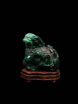 A MALACHITE SCULPTURE DEPICTING A FOO DOG, China, Qing dynasty, 19th century