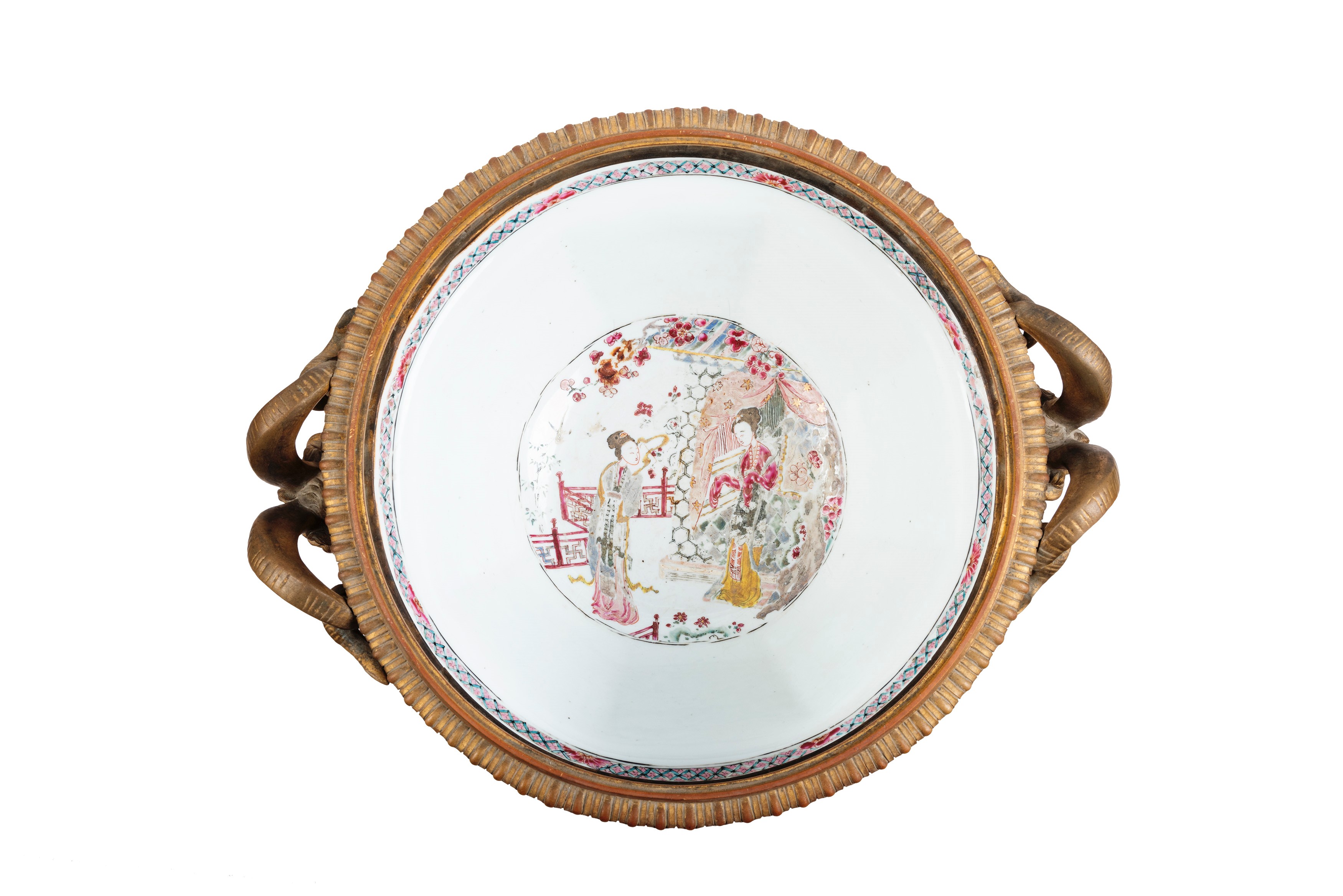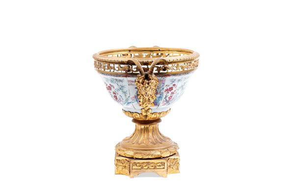 A ORMOLU-MOUNTED FAMILLE ROSE PORCELAIN BOWL, China, Qing dynasty, Yongzheng period (1723-1735)