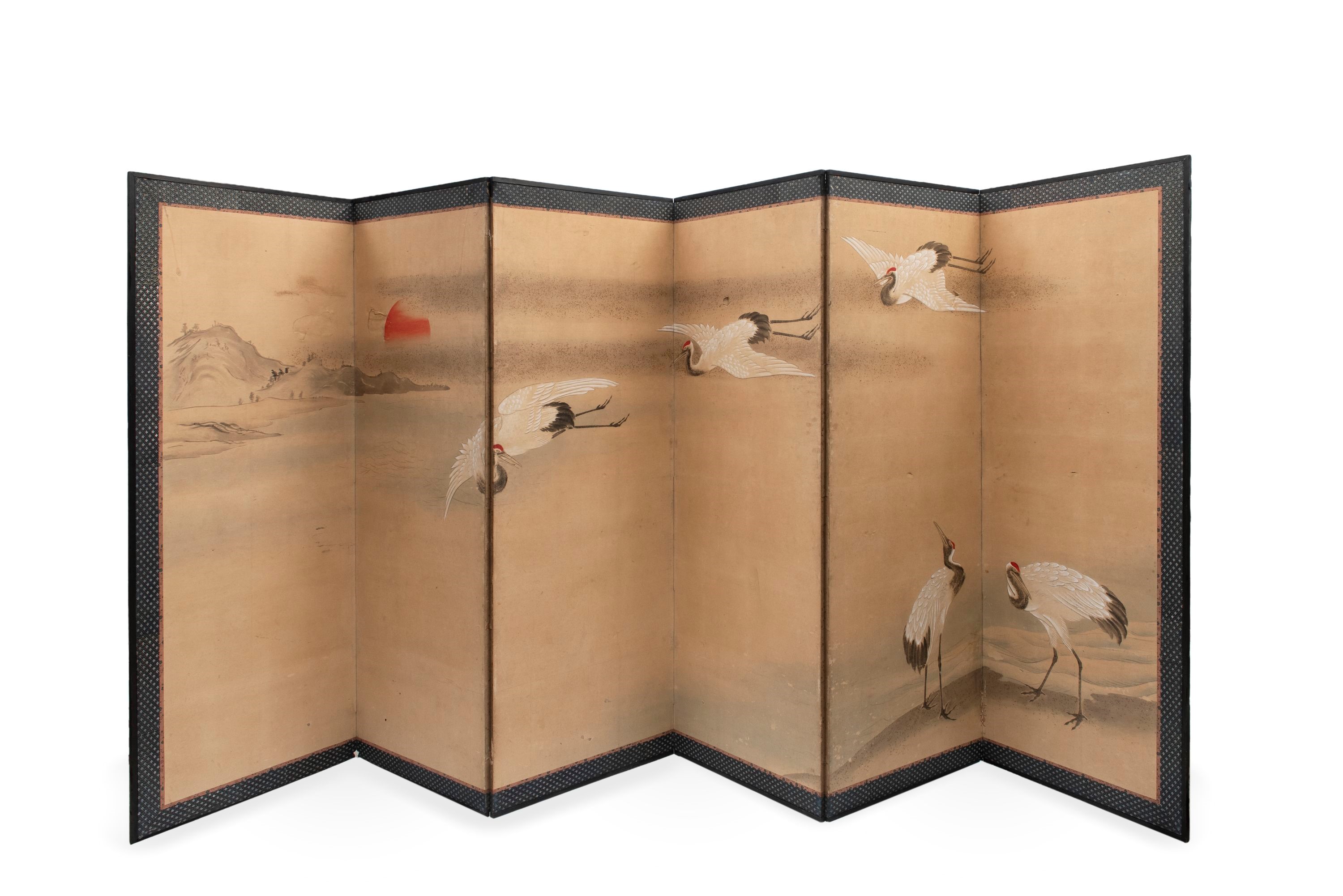 A PAINTED SIX-PANEL PAPER SCREEN, Japan, Meiji period (1868-1912)